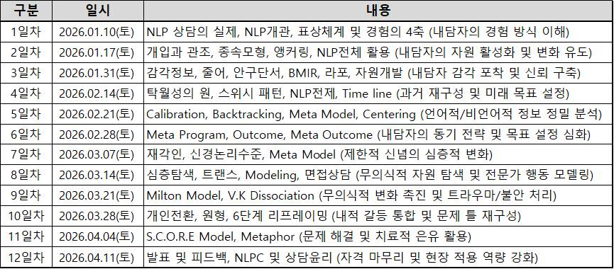 ◈ 2025년 상반기 NLP Practitioner자격과정 목/금 종일반 개설 안내 ◈